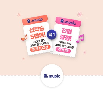 에이닷 뮤직 30회 듣기 이용권 추가 100장 쿠폰 또는 추가 1장 쿠폰