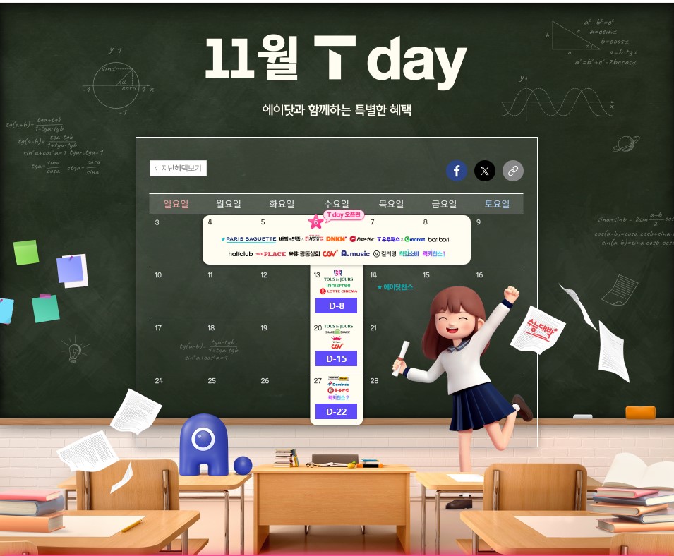 | [sk텔레콤]이 달의 Day2 혜택11월 20일 (수) (4) | 2024.11.20 |