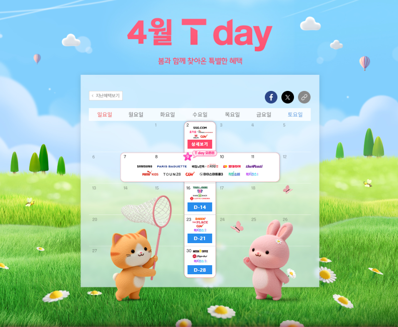 sk멤버쉽 T데이 행사확인하시고, 혜택받아가시길 바랍니다 ^^