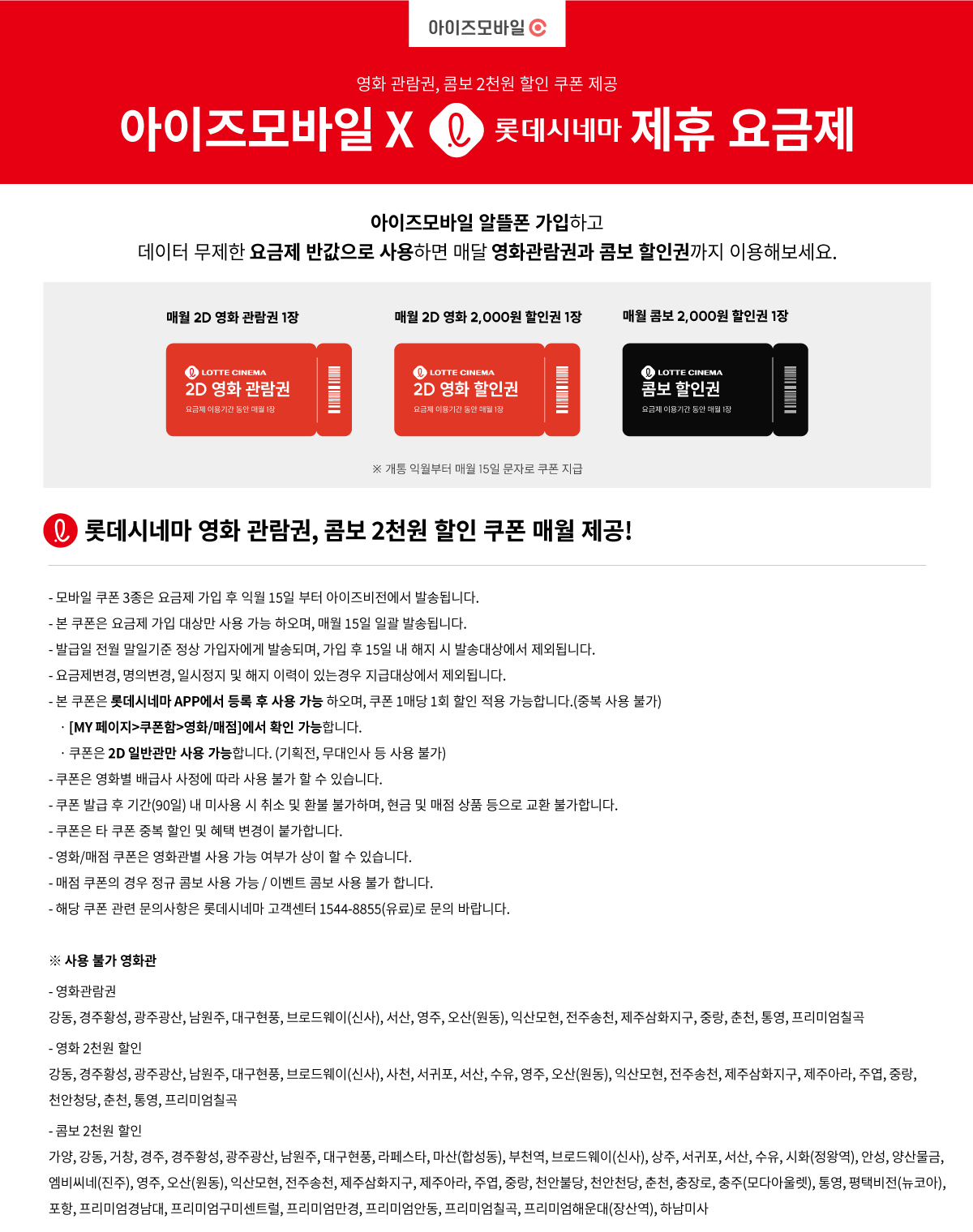 아이즈모바일와 롯데시네마가 함께하는 영화관람요금제에 대해 포스팅합니다.