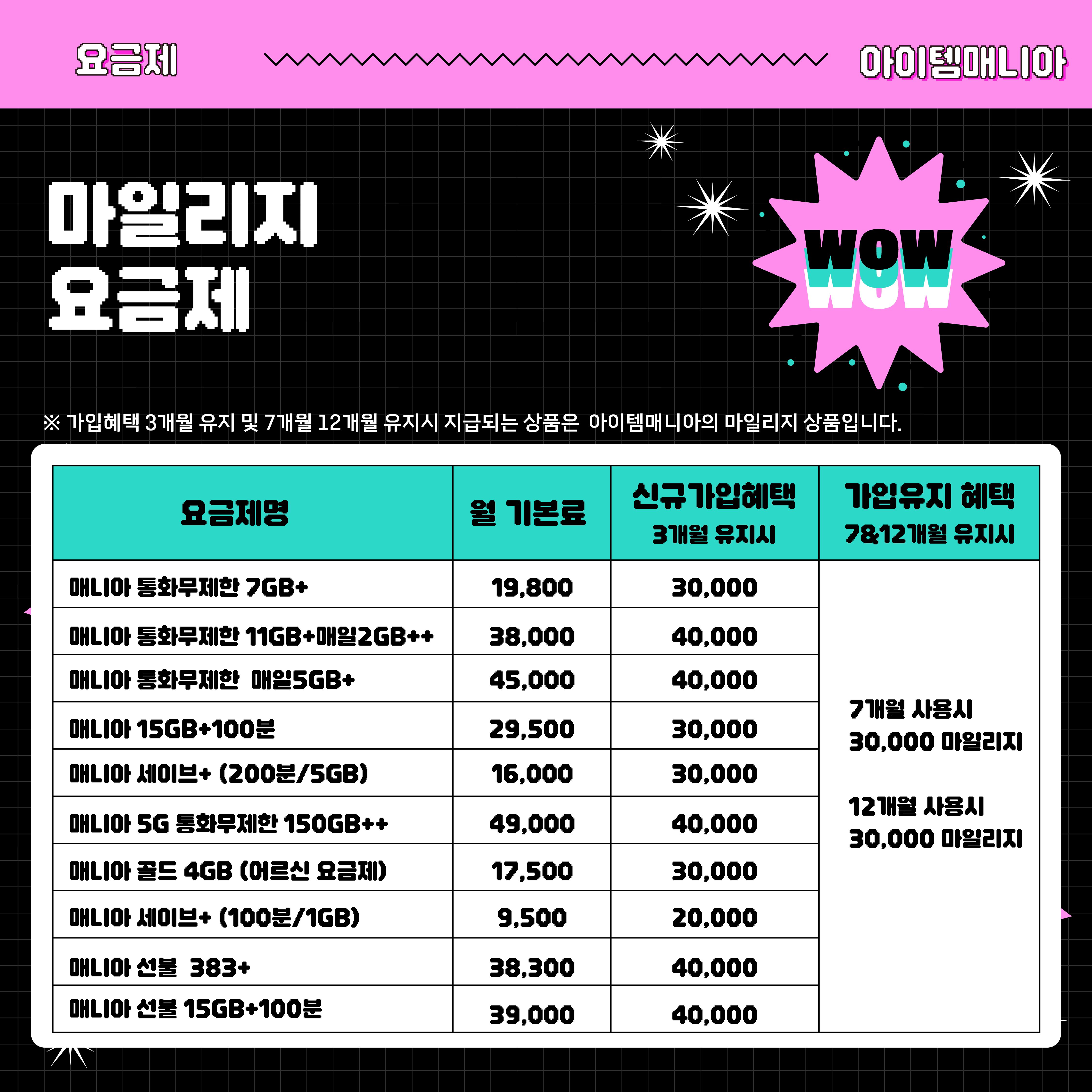 1.마일리지는 해당 요금제로 가입한 휴대폰 번호로 쿠폰 발송 해드립니다.