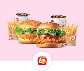 이벤트 메뉴: 클래식치즈버거세트, T day 2인 세트(새우버거+핫크리스피버거+포테이토(R) 2개+콜라(R) 2개)