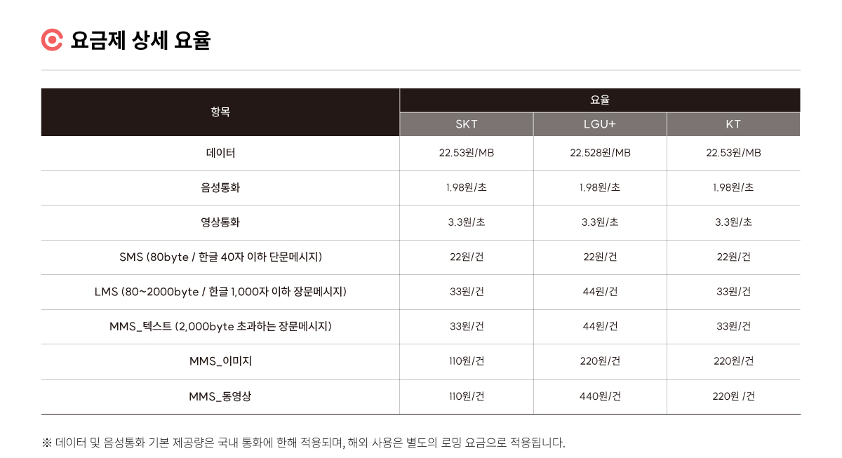 *SK: 15GB 미만 요금제 기본제공량 내에서 사용가능, 15GB 이상 요금제 최대 15GB 사용가능