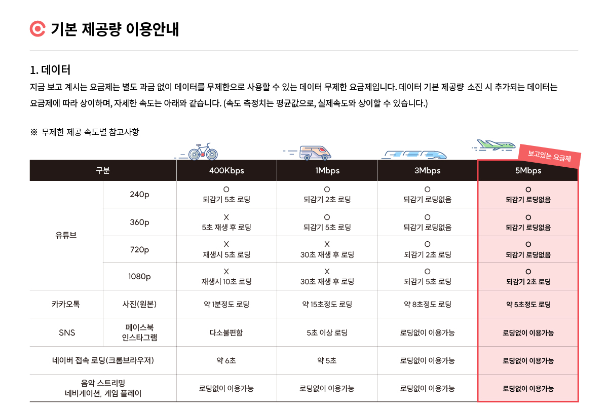 데이터 100GB소진시 최대 5Mbps 무제한