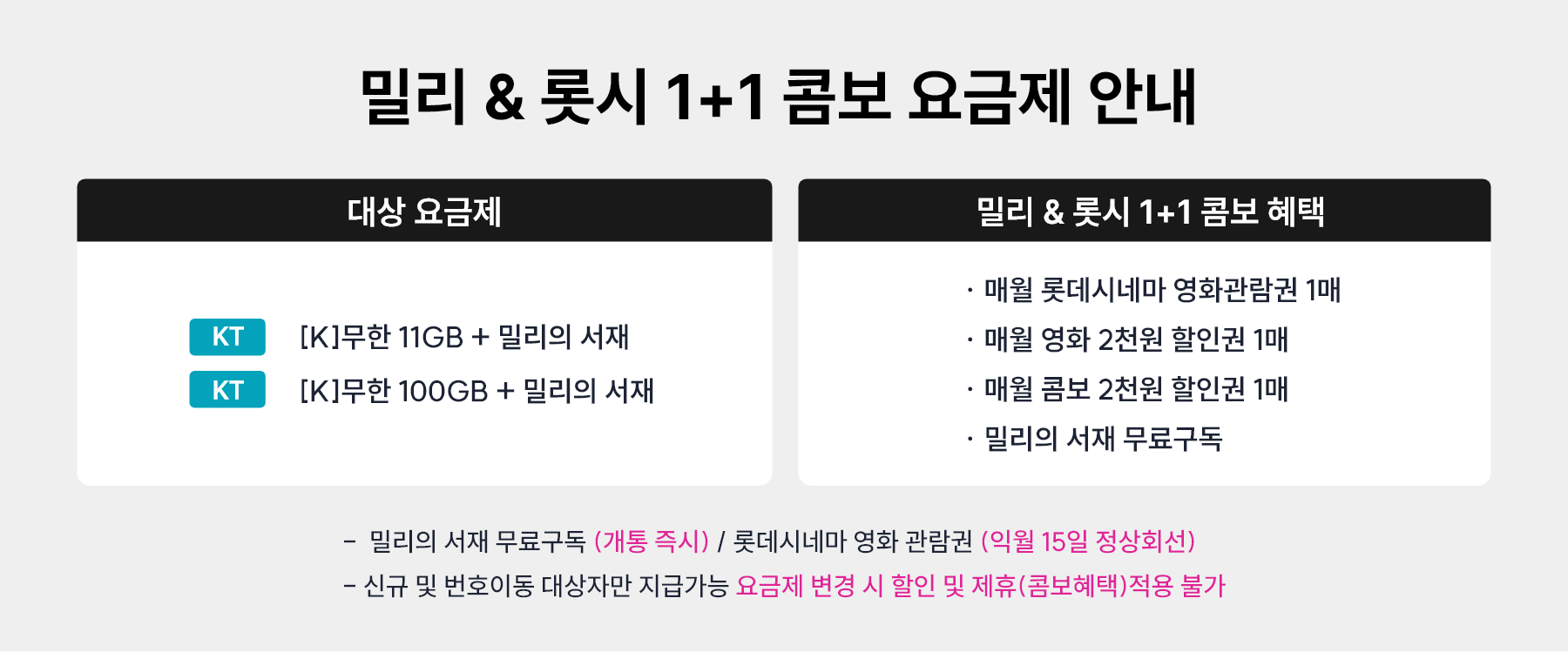 [아이즈모바일-KT망]  밀리의서재+롯데시네마