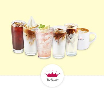 납작복숭아 에이드(시즌), 아이스크림 카페라떼, 룽고, 카페라떼, 락토프리 카페라떼, 카페 오트 중 택1