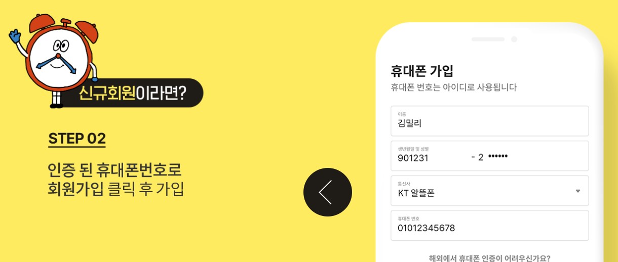 - 인증 된 휴대번호로 회원가입 클릭 후 가입