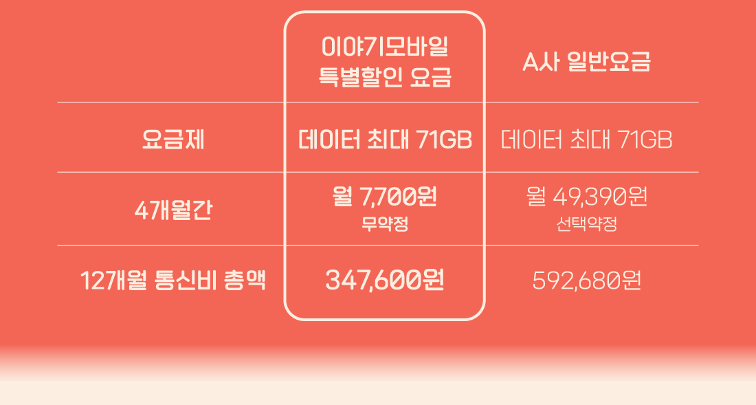 4개월이라 기간이 짧긴하지만 lte무제한을 7700원에 사용할 수 있어서 가성비 요금제입니다.